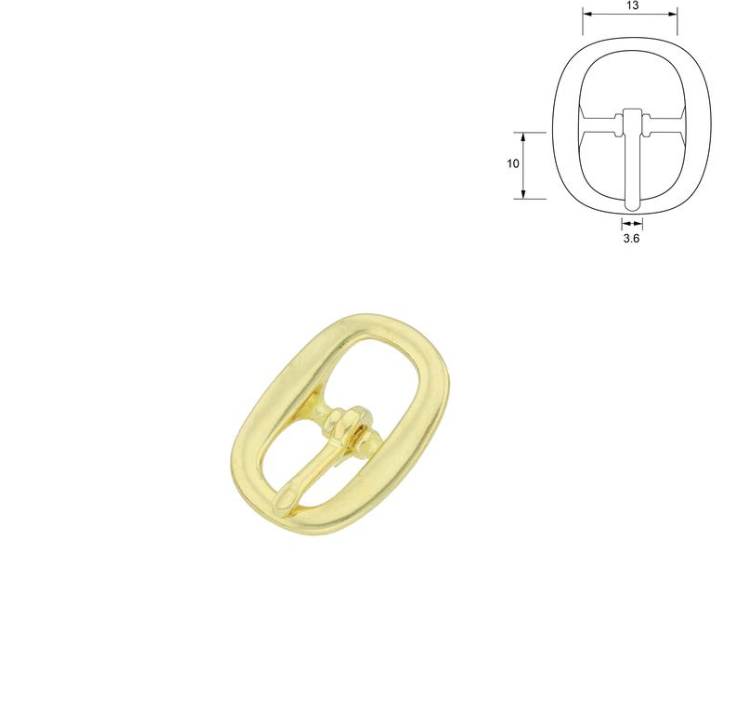 En klassisk og gjennomprøvd grimespenne i massiv messing, spesielt utviklet for produksjon av grimer og hodelag til hest. Denne spennen er kjent for sin karakteristiske halvrunde form, som ikke bare er estetisk vakker, men som også har en viktig funksjon: De glatte, avrundede kantene og den nedsenkede tornen minimerer risikoen for at hesten skal henge seg fast eller skrape seg opp.